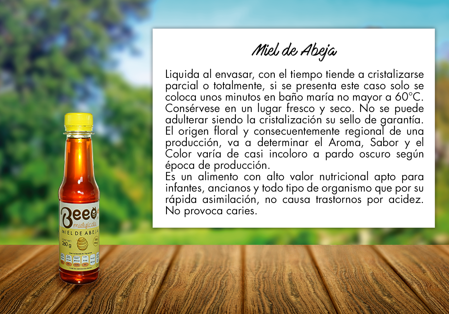 Beeo es una empresa familiar mexicana, cuya actividad principal es la producción, elaboración y comercialización de productos alimenticios y cosméticos a base de este dulce y benéfico manjar.